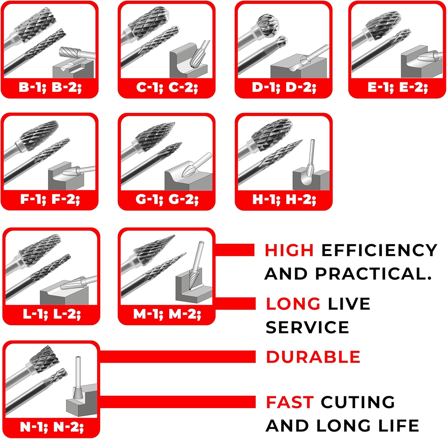 Crafted with durability in mind, these bits are engineered to tackle the challenges of carving hard materials. The set includes an assortment of bit shapes and sizes, empowering you to achieve detailed and intricate designs on steel, stone, bone, and other robust materials.